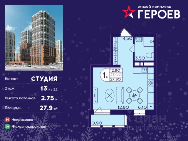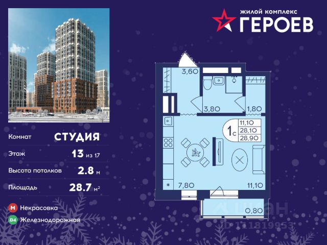 Продаётся студия 27.90 кв. м. в жилом комплексе "Героев" в Балашихе, Железнодорожный. Квартира расположена на 13 этаже 410 корпуса. В наличии квартиры с отделкой. Всего 40 минут до центра Москвы. При покупке квартиры в сданном доме ключи выдаются сразу! Жилой квартал "Героев" - это уютный проект для семей с детьми. В квартале созданы все условия для досуга всех возрастов: игровые и спортивные площадки, места для отдыха и прогулочные зоны. За 15 минут можно дойти от дома до Ольгинского лесопарка, популярного места для отдыха на свежем воздухе. На территории жилого комплекса уже открыт детский сад на 250 мест и началось строительство еще одного - для 220 малышей, а также школы для 1320 учеников. Рядом работают магазины, кафе, супермаркеты, пункты выдачи. Преимущества: • В уютных светлых квартирах с просторными кухнями-гостиными удобно встречать гостей и проводить время наедине друг с другом. • Благодаря увеличенному остеклению в комнатах много света. • Квартиры продаются с отделкой, можно заселяться сразу после получения ключей.