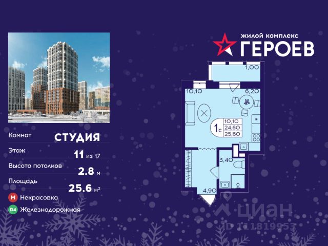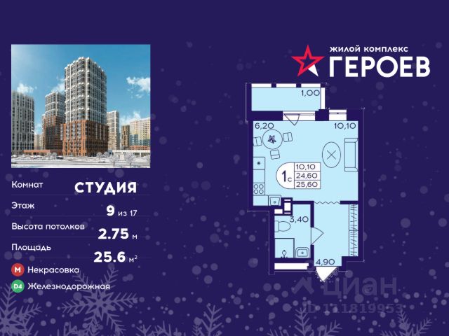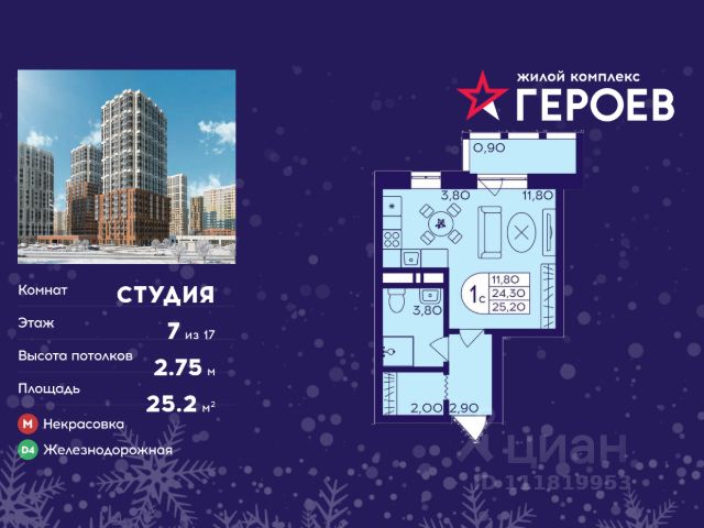 • ✓ В каталоге Циан 148 квартир-студий в микрорайоне Железнодорожный в городе Балашиха.