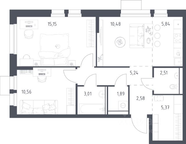 Квартира порадует простором и светом! Большая кухня-гостиная площадью 10 метров — это не только место для кулинарных шедевров, но и зона отдыха с большим диваном. Просторная комната 15 метров вместит всю необходимую мебель и технику, а специализированная ниша идеально подойдёт для домашнего кинотеатра. Широкая прихожая с большим гардеробом и зоной хранения добавит порядка. Качественный ремонт высококачественных материалов, стильные окна с отличной светопропускной способностью и хорошая сантехника на кухне и в ванной — всё для вашего комфорта!
