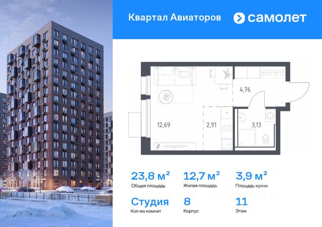 Строим кварталы для жизни с заботой о будущем. Предлагается квартира студия комфорт-класса 23,2 кв.м в корпусе 8 на 16 этаже, в ЖК "Квартал Авиаторов" Квартира с чистовой отделкой. Доступность дополнительных опций уточняйте у застройщика. Приобрести квартиру возможно по специальным акциям от застройщика, с текущими условиями акций можно ознакомиться в блоке "Акций". Цена динамическая и может отличаться, уточняйте актуальность у застройщика. "Квартал Авиаторов" — жилой комплекс комфорт-класса, расположенный в 2 км от железнодорожной станции Балашиха (5 минут на автомобиле, 30 минут пешком). Поблизости — Горенский лесопарк и заповедник "Лосиный остров". В проекте предусмотрены закрытые дворы с детскими и спортивными площадками, безбарьерная среда.