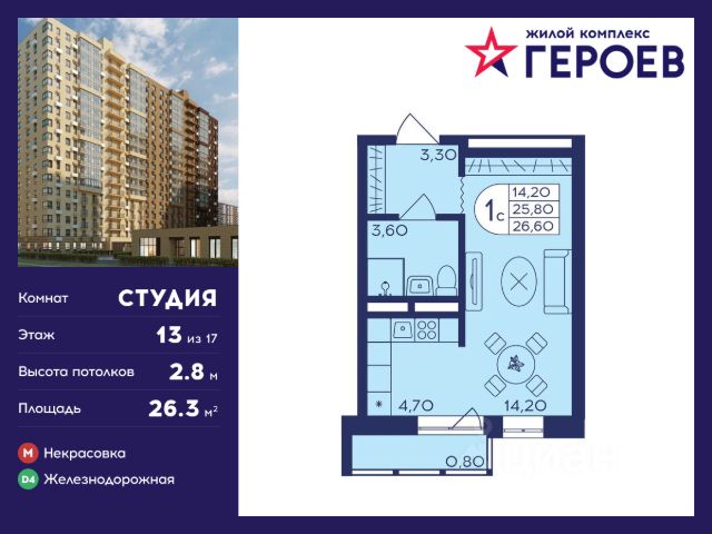 Продаётся студия в сданном доме (Безымянная, 16 (Север, корпус 23)), срок сдачи: IV-кв. 2023, общей площадью 20.33 кв.м., на 8 этаже. Расположение, транспортная доступность