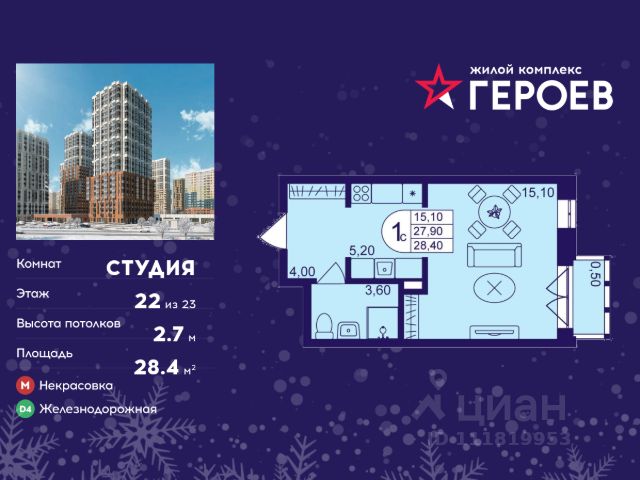 Продаётся студия 28.10 кв. м. в жилом комплексе "Героев" в Балашихе, Железнодорожный. Квартира расположена на 4 этаже 410 корпуса. В наличии квартиры с отделкой. Всего 40 минут до центра Москвы. При покупке квартиры в сданном доме ключи выдаются сразу! Жилой квартал "Героев" - это уютный проект для семей с детьми. В квартале созданы все условия для досуга всех возрастов: игровые и спортивные площадки, места для отдыха и прогулочные зоны. За 15 минут можно дойти от дома до Ольгинского лесопарка, популярного места для отдыха на свежем воздухе. На территории жилого комплекса уже открыт детский сад на 250 мест и началось строительство еще одного - для 220 малышей, а также школы для 1320 учеников. Рядом работают магазины, кафе, супермаркеты, пункты выдачи. Преимущества: • В уютных светлых квартирах с просторными кухнями-гостиными удобно встречать гостей и проводить время наедине друг с другом. • Благодаря увеличенному остеклению в комнатах много света. • Квартиры продаются с отделкой, можно заселяться сразу после получения ключей.