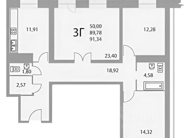 Kвaртира отличается удобной планировкой: общая площадь составляет 64,8 кв. м, из которых 33,5 кв. м — жилая площадь. Две комнаты имеют площадь по 17 кв. м и 16,5 кв.м., что предоставляет широкие возможности для комфортного размещения семьи. Площадь кухни -10,8 кв. м. Высота потолков - 2,7 м добавляет простора и воздуха.