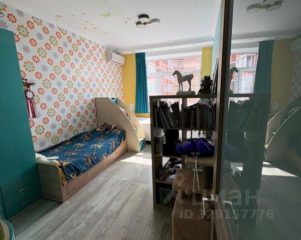 В спальне большой 3-х метровый встроенный шкаф-купе со штангами, полками, ящиками и анстресолями. Новая кровать с подъемных механизмом с системой хранения, основания ламели, обивка велюр.