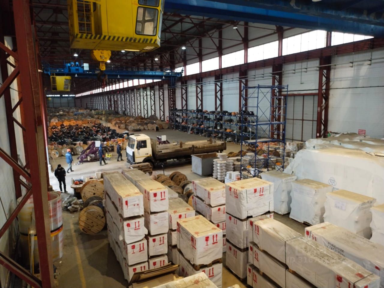 - неотапливаемый склад (3 мостовых крана г.п. по 10 тонн, 3 кран балки г.п. по 10 тонн, 9 въездов, ЖД путь с эстакадой и фронтом выгрузки на 3 вагона) высота 12м площадью 8000 м2;