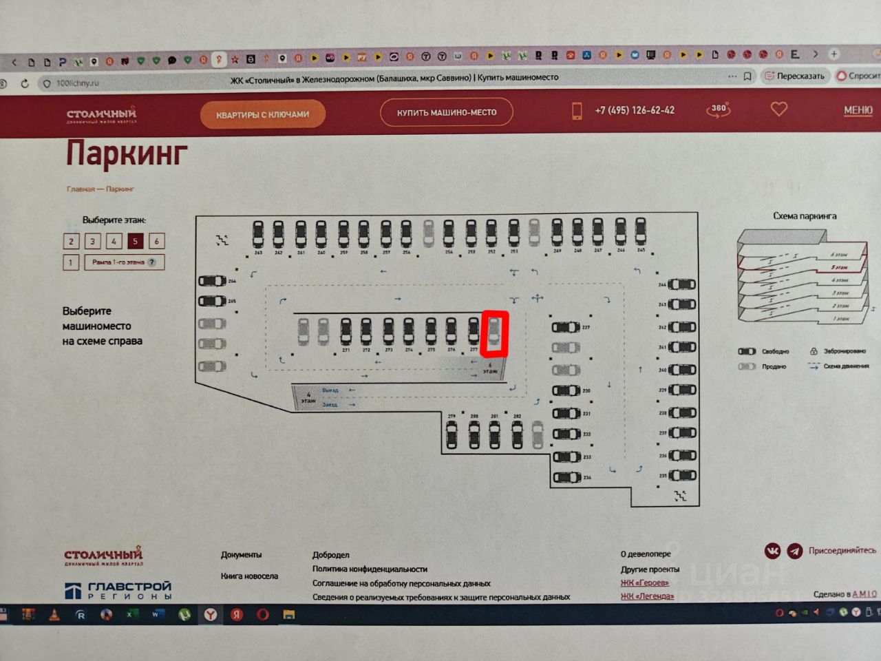 Машиноместо в многоуровневом паркинге. Собственник. Есть круглосуточная охрана. 5 этаж. На длительный срок.