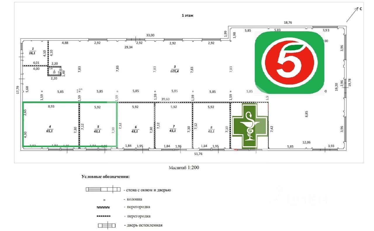 1168492. Предлагаем помещение свободного назначения, площадью 108.2 кв. м, расположенное на первом этаже здания.