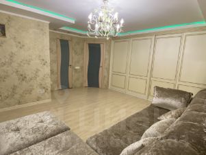 Полная меблировка: новый раскладной диван на троих, шкаф-купе, кухонный гарнитур, холодильник, микроволновка, стиральная машина.