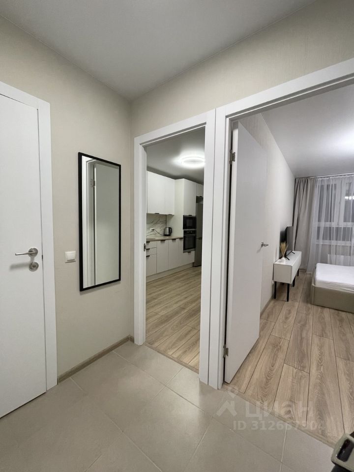 Комната также оснащена мебелью- двухспальная кровать 160х200 с ортопедическим матрасом и подъемным механизмом, вместительным шкафом, тв-тумбой, прикроватными тумбочками и телевизором.В квартире очень светло.