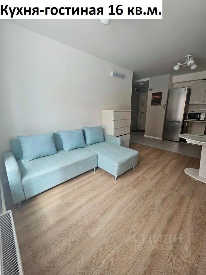 Площадь 36,2 кв.м. Кухня совмещенная с гостиной 16,6 кв.м. (кухонный гарнитур, диван, холодильник, электрическая варочная панель, телевизор, стенка, стол, микроволновая печь, стулья). Комната 11 кв.м. (кровать, комод, прикроватная тумба). Санузел совместный 4,1 кв.м. (стиральная машина). Коридор 4,6 кв.м. (шкаф). Защита от детей стоит на окнах.