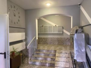 Чистый и аккуратный подъезд с цветами и консьержем.