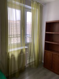 Расположена на 13 этаже 21 этажного дома со стороны двора. Окна выходят не на проезжую часть проспекта, а во двор.