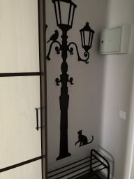 В коридоре большой вместительный шкаф, вешалка и полка для обуви.