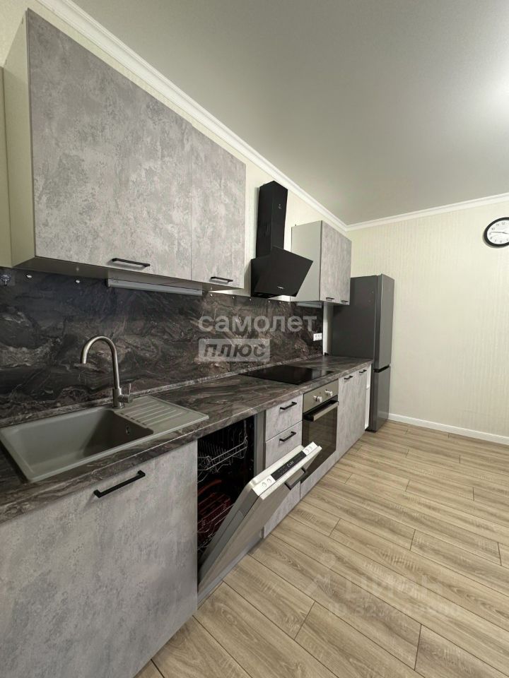 Квартира оснащена мебелью и всей техникой: кондиционер, духовой шкаф, варочная панель, холодильник, посудомоечная машина, вытяжка, телевизор, стиральная машина.