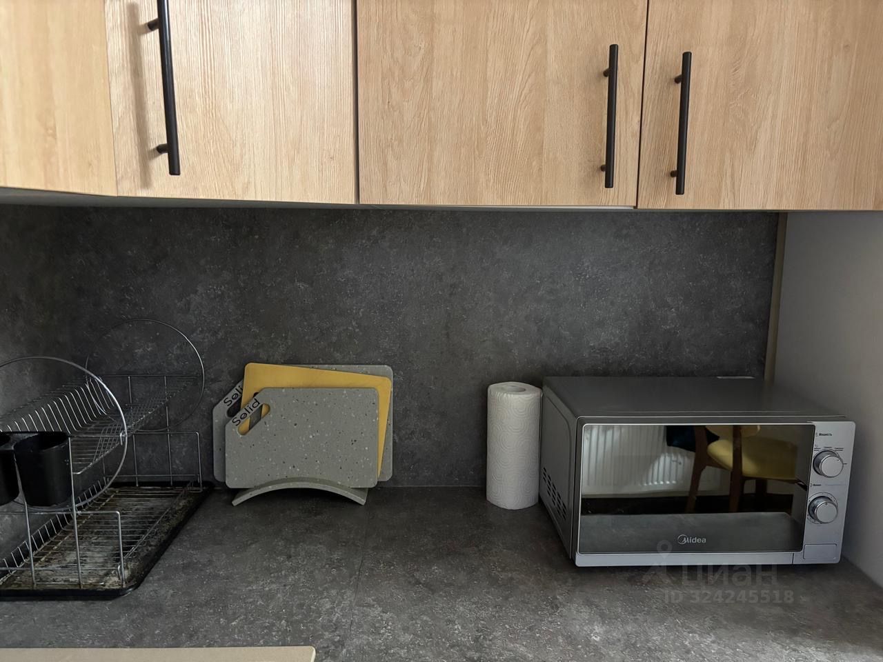 В квартире есть всё необходимое для комфортного проживания. Просторная кухня с мебелью и современной техникой, включая холодильник и стиральную машину. В комнате также есть мебель и телевизор. Санузел совмещённый, оборудован ванной. На балконе можно приятно провести время на свежем воздухе, наслаждаясь видом.