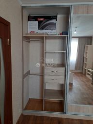 Общая площадь квартиры составляет 37,7 метров без учета застекленной лоджии. Просторная изолированная комната 19 метров оборудована глубоким зеркальным шкафом-купе с разноформатной системой хранения, двуспальной кроватью, рабочим столом, кондиционером, телевизором, журнальным столиком, полками. Спальня продолжается выходом на застекленную лоджию с видом на зеленый ухоженный двор. Просторная кухня 8 метров оборудована кухонным гарнитуром, холодильником, столом, электрической плитой с духовым шкафом, электрическим чайником, фильтром для воды. Санузел совмещенный, в хорошем состоянии, установлена стиральная машина. Просторный коридор с дополнительной системой хранения и комодом.