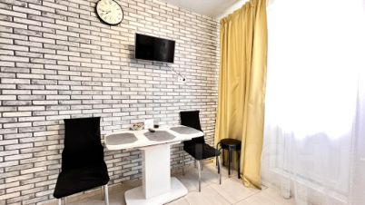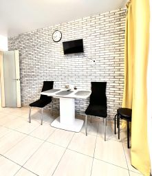 Размещение максимально 4 человека. В каждой студии есть - одна двуспальная кровать и раскладной диван. Есть все условия для приготовления пищи, необходимый набор посуды.