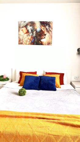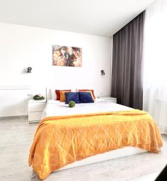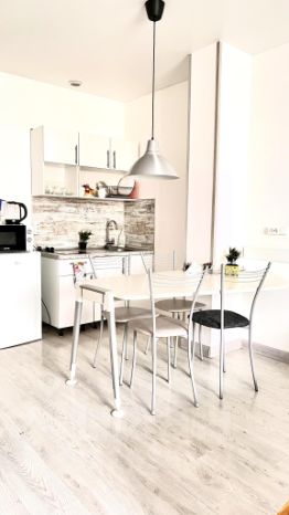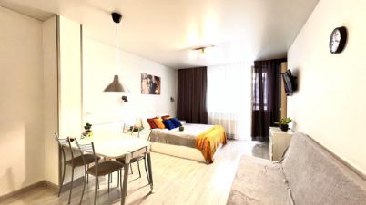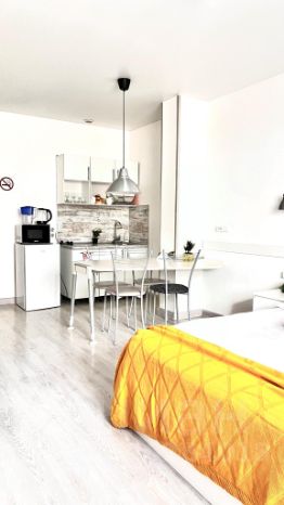 Размещение максимально 4 человека. В каждой студии есть - одна двуспальная кровать и раскладной диван. Есть все условия для приготовления пищи, необходимый набор посуды.