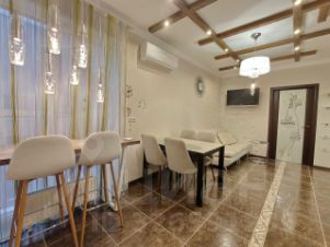 В ЖК "Акварели" сдаётся на длительный срок роскошная Евротрёшка с большой кухней гостинной. Квартира находится на 9 этаже с панорамными окнами на тихий двор. Адекватные соседи. В квартире есть всё для комфортного проживания: посудомойка, духовка, св печь, телевизор, стиральная машина, холодильник, бойлер на летний период отключения воды, кондиционер. Уютная и домашняя обстановка: кожаный диван, камин, кабинет для работы. Есть гардеробная и большая ванная комната. Квартира свежая, светлая и тёплая.
