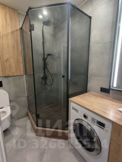 Санузел совмещенный, оснащен душевой кабиной и стиральной машиной. Лоджия застеклена и утеплена, что позволяет использовать ее круглый год.