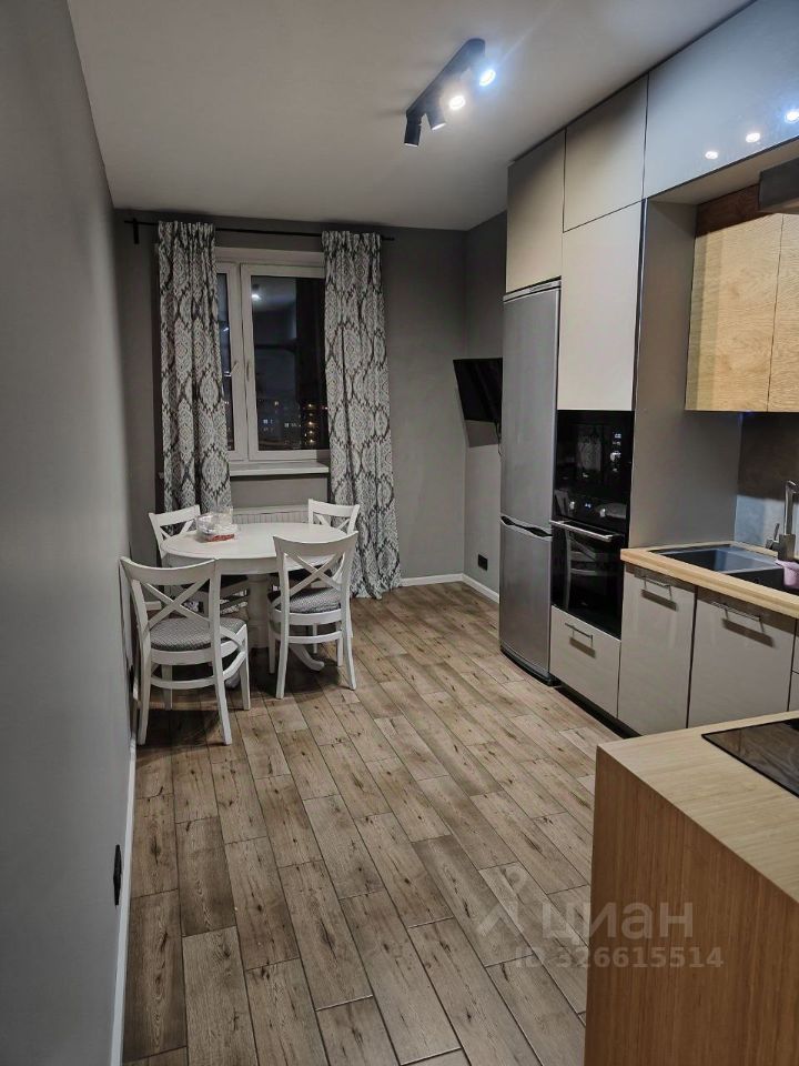Квартира расположена на 17 этаже монолитного дома с пассажирским и грузовым лифтами. В квартире выполнен евро ремонт, что видно по современному дизайну и качественным материалам.
