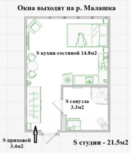 Светлая студия с видом на реку — заезд в день просмотра, без комиссии