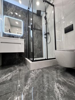 Квартира полностью оборудована мебелью и техникой для проживания, везде теплые поль, бойлер, кондиционер, телевизоры, холодильник, микроволновка, стиральная машина встроенная.