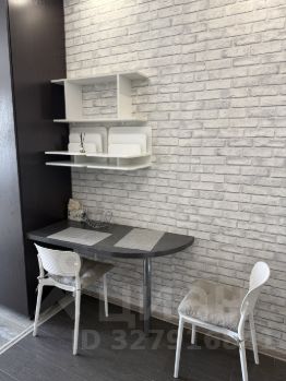 Квартира полностью готова к заселению. В студии выполнен современный ремонт, установлена мебель и необходимая техника: кондиционер, холодильник и стиральная машина. Санузел совмещённый.