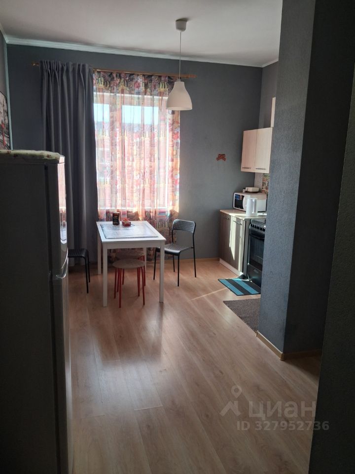 В квартире есть все необходимое для комфортного проживания: современная мебель как на кухне, так и в комнате, а также необходимая техника — холодильник и стиральная машина. Ванная комната оборудована душевой кабиной, что делает использование пространства удобным и функциональным.