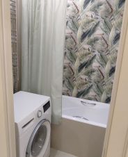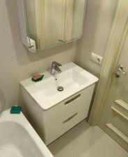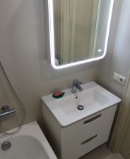 Сан-узел раздельный, установлена ванная, есть тропический душ и зеркало с подсветкой.