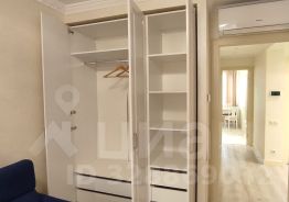 В комнате большой диван-кровать и вместительная система хранения, кондиционер.