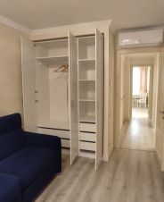 Во второй комнате полуторная кровать и встроенный шкаф