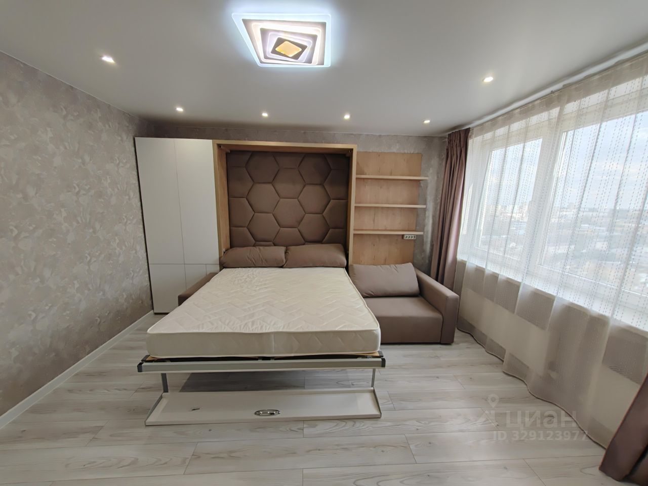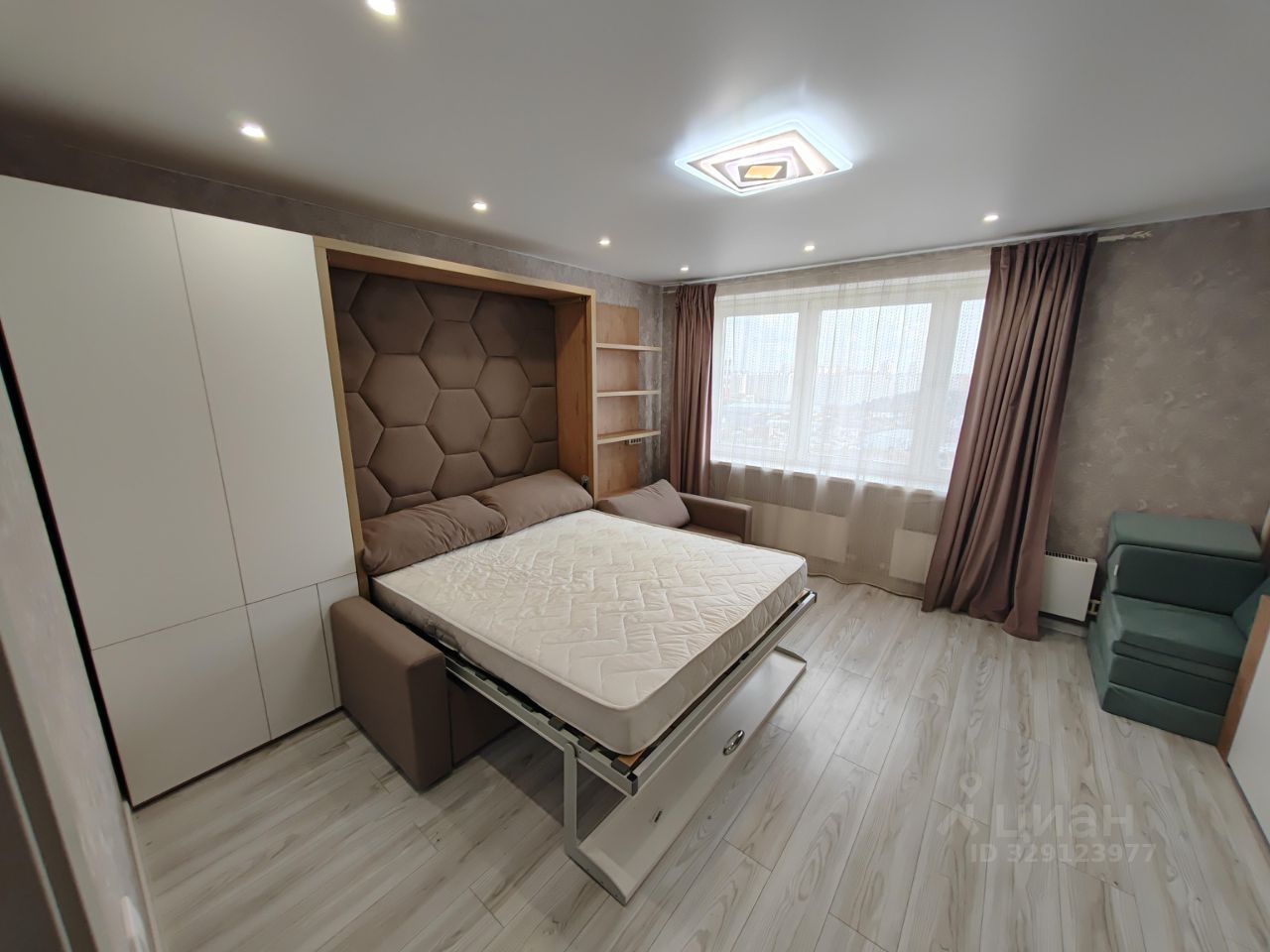 Интерьер квартиры продуман до мелочей: в комнате МЕБЕЛЬ ТРАНСФОРМЕР, которая отлично оптимизирует пространство, кровать с матрасом АСКОНА (вам понравится). На кухне установлена современная мебель. Кухня просторная, площадью 10 кв. м, где приятно проводить время за приготовлением еды. В наличии вся необходимая техника: холодильник и стиральная машина. Санузел совмещённый, оборудован ванной. Из окон открывается замечательный вид на улицу, есть балкон для отдыха на свежем воздухе с прекрасным видом.