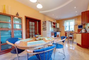 Сдам трехэтажный дом (собственник) на благоустроенном участке. Закрытый коттеджный поселок, круглосуточная охрана. В доме три спальни, кухня-столовая, камин, гардеробная, комната отдыха, гараж на 2а/м, 2 санузла, чердак, подвал. На территории выполнен ландшафтный дизайн с огромным количеством деревьев и растений, есть мангал и беседка. Стабильный интернет и телевидение.
