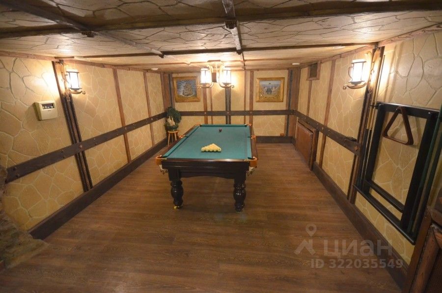 На цокольном этаже коттеджа расположились: бассейн 6*4 м. (с подогревом и противотоком) финская сауна, зона отдыха с музыкальным центром, бильярд 9 футов, душ.