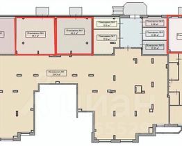 Количество входов - два. Высота потолков 3,5м. Планировка открытая. Остекление витринное.