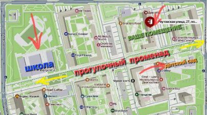В 2 - х минутах находится детский сад, а в 6 минутах находится общеобразовательная школа 32, что дает дополнительный трафик детей и их родителей.