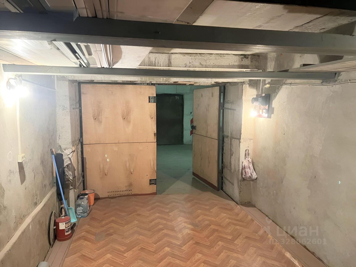 Гараж с подвалом. Площадь гаража 18.2м2, площадь подвала 8,9м2. Деревянный пол. В подвале бетонная плитка и окраска стен. Имеются стеллажи и балки для хранения под потолком. Свет. Круглосуточная охрана. Гараж в 3х этажном монолитном здании