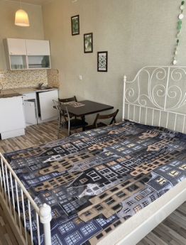 Каждая студия полностью оборудована под гостиничный номер с собственной кухней и сан.узлом с душевой кабиной, а также двуспальной кроватью, диванчиком, телевизором, холодильником, кухней, плитой, посудой.