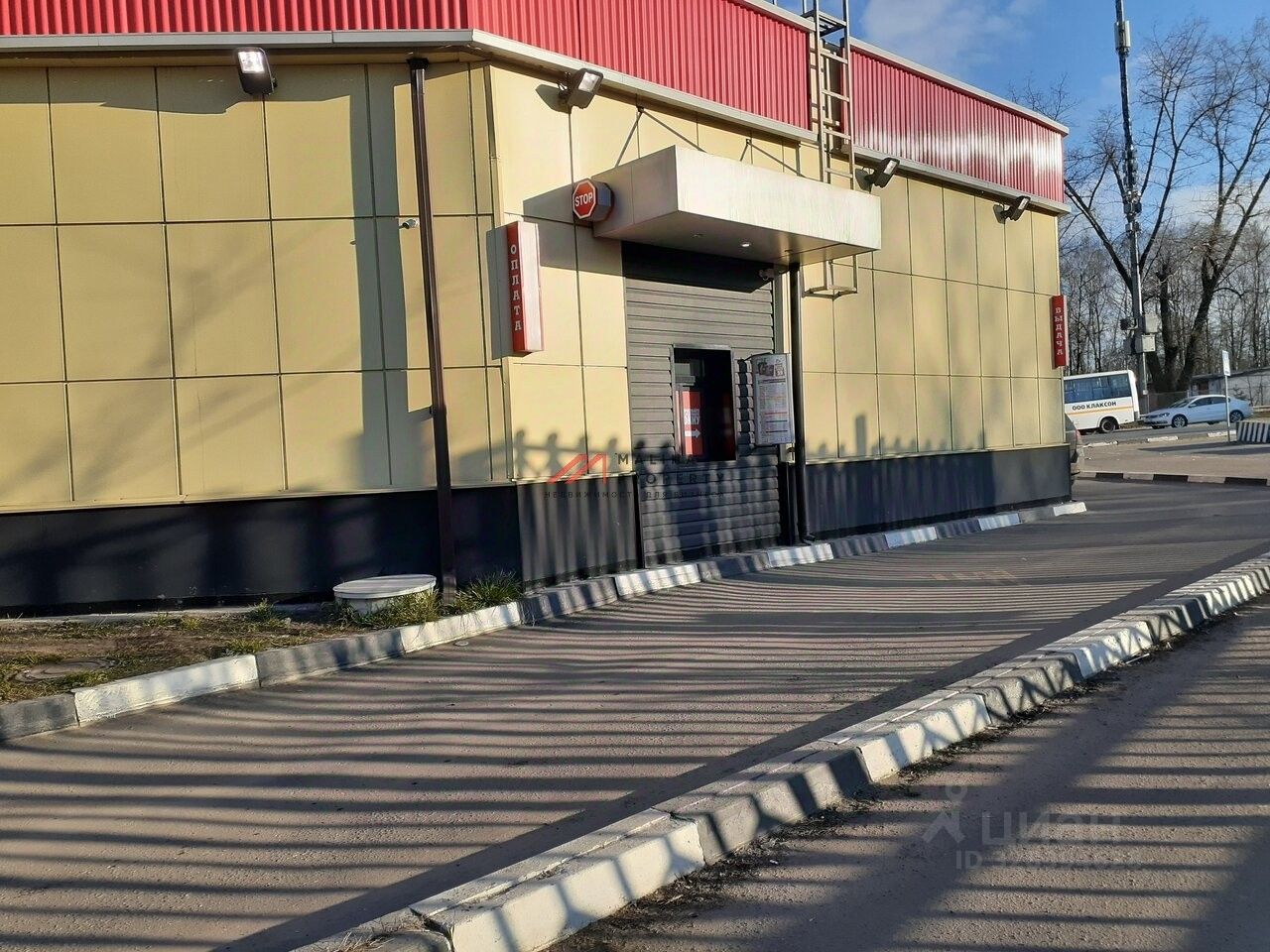 Интенсивный автомобильный и пешеходный трафик вдоль помещения. Окружение: заправка, автосервис.