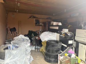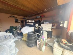 Под всем гаражом бетонное основание, сверху деревянный пол. Размер: длинна 5200 , ширина 4800 , высота 2700 ( по ширине поместится два небольших авто). Ворота 2200х2500.