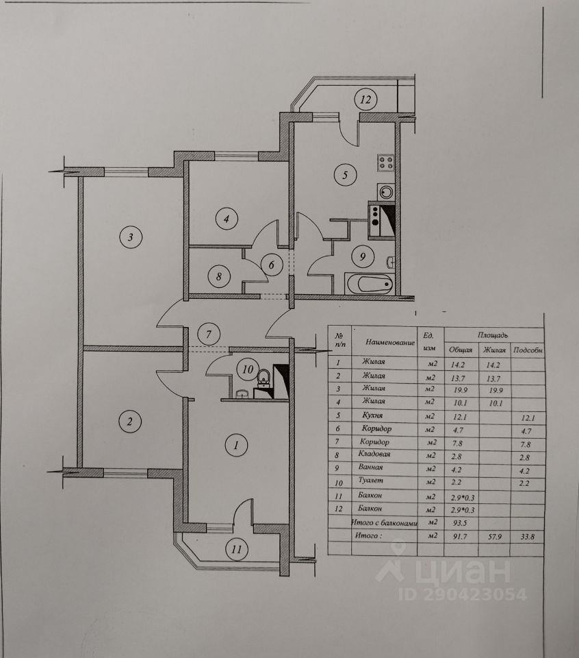 Общая площадь 91.7м²