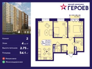 Продаётся 2-комнатная квартира 54.10 кв. м. в жилом комплексе "Героев" в Балашихе, Железнодорожный. Квартира расположена на 4 этаже 412 корпуса.