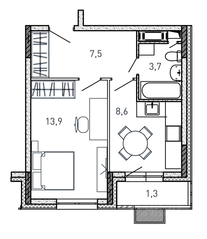 1-комн. от 32 м²