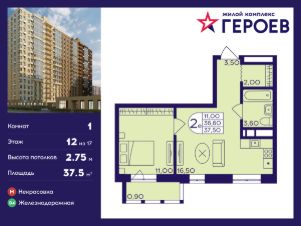 Продаётся 1-комнатная квартира 37.50 кв. м. в жилом комплексе "Героев" в Балашихе, Железнодорожный. Квартира расположена на 12 этаже 410 корпуса.