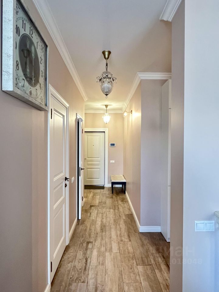 Общая площадь квартиры составляет 90.9 кв. м, жилая площадь — 46.58 кв. м. Квартира расположена на 10-м этаже 23-этажного дома, построенного в 2015 году. Дом выполнен из монолитно-кирпичных материалов.