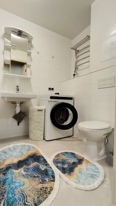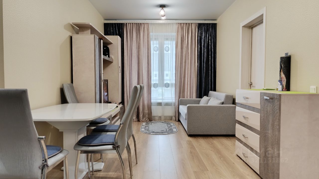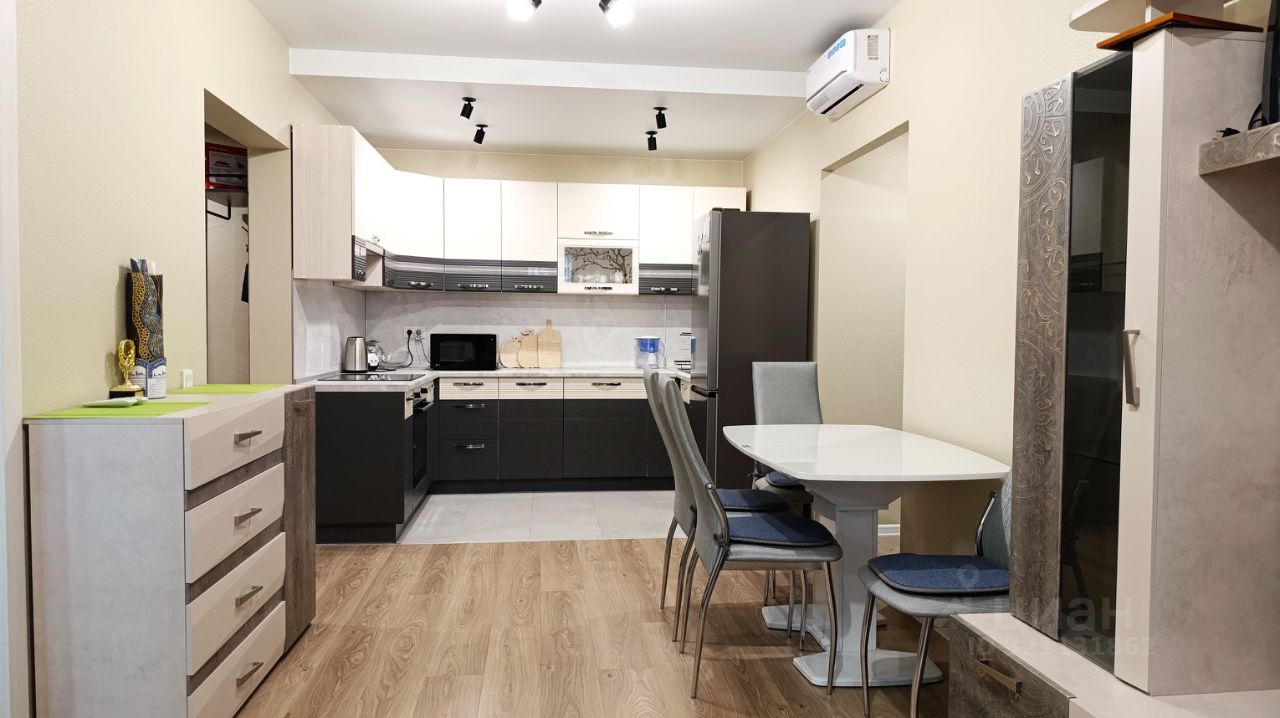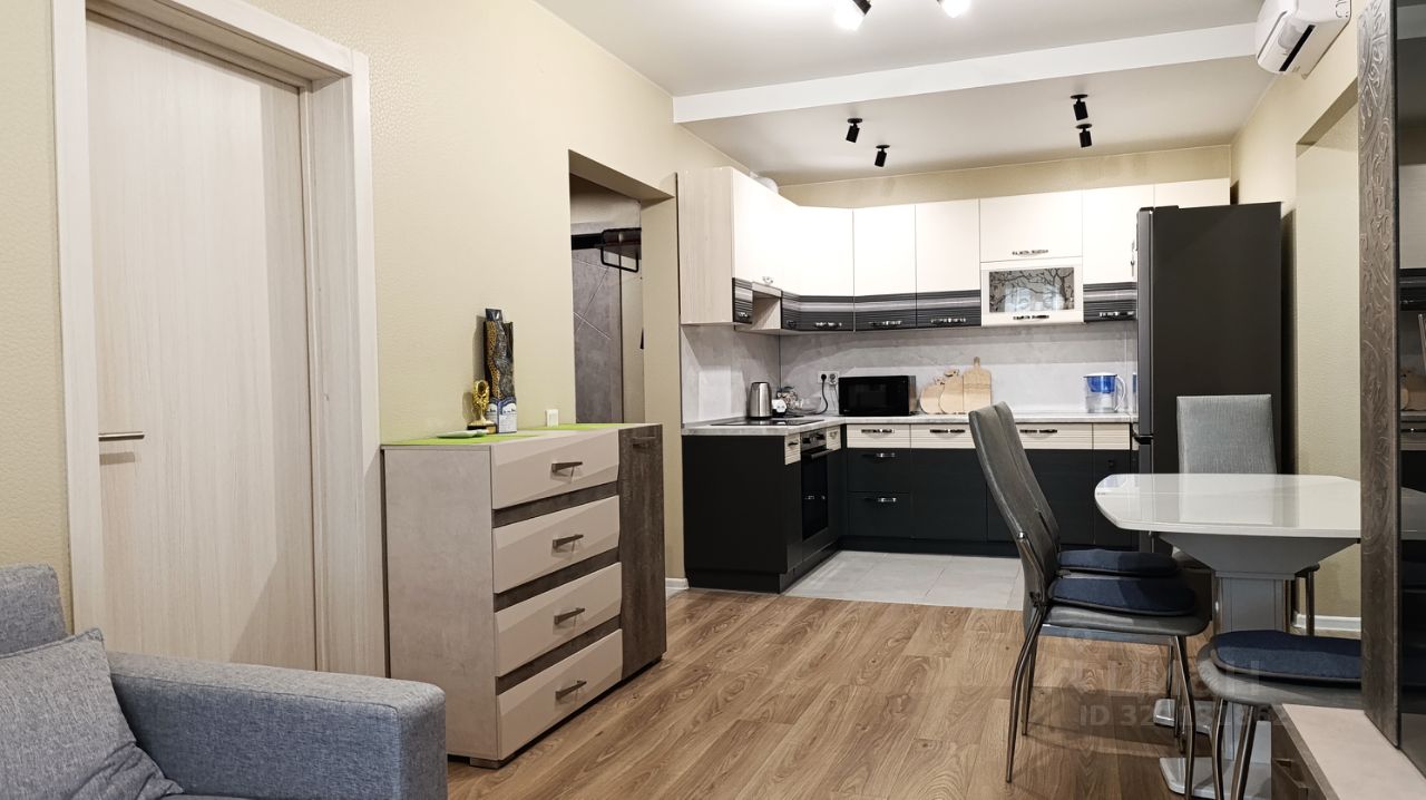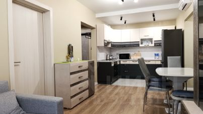 Квартира находится на комфортном 9 этаже, окна с видом на улицу на Запад. Просторная прихожая оборудована мебелью для хранения одежды, две жилые комнаты по 10,4 м2 В квартире два санузла отделанных светлой керамической плиткой, электрический полотенцесушитель, стиральная машина. Очень просторная кухня-гостиная - 20,9 м2, прекрасный кухонный гарнитур, посудомоечная машина, варочная панель, духовой шкаф и вытяжка остаются новым хозяевам квартиры в подарок. В каждой комнате и на кухне установлен кондиционер. Гостиная зона укомплектована диваном и мебелью. Ремонт выполнен в светлых тонах, состояние квартиры - новое.