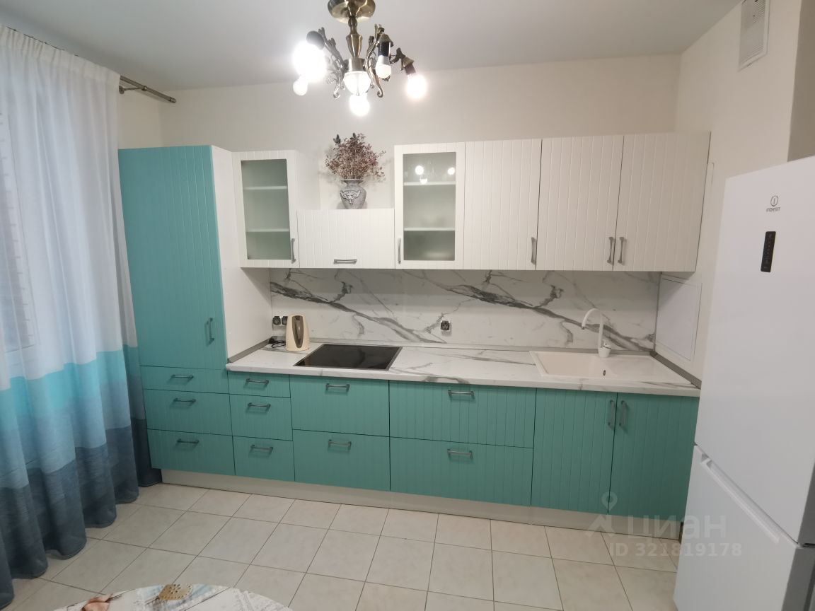 В квартире большая современная кухня (12 кв м) с балконом.