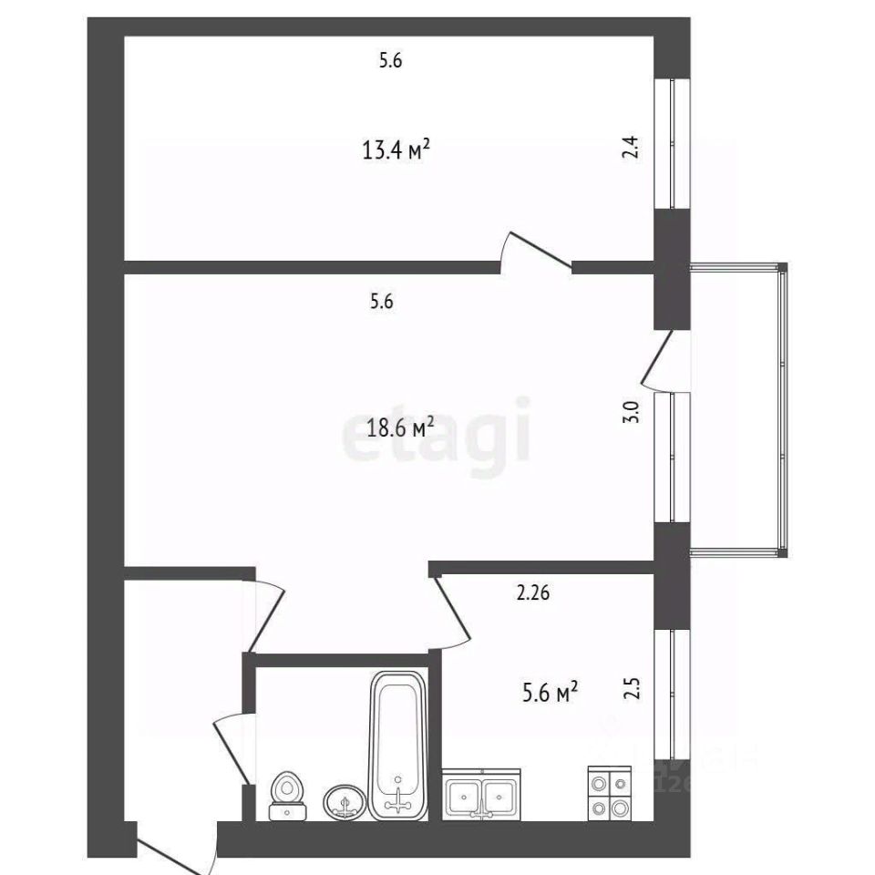 • Жилая площадь — 28 м², кухня — 6 м²