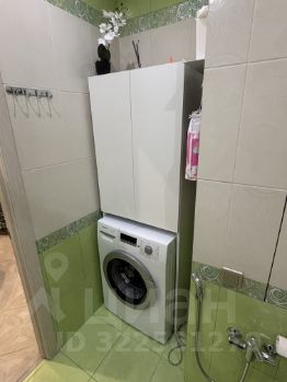 Санузел совмещен с ванной, что позволило сделать кладовку. В санузле установлена стиральная машина, проточный водонагреватель и система от протечек воды нептун.